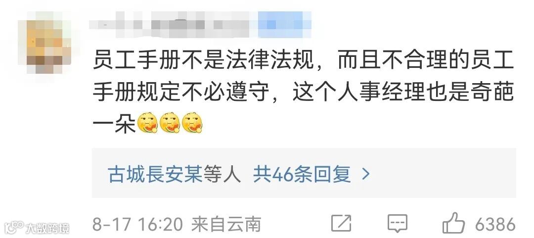 一些网友忍不住在评论里谴责该公司的行为:不但漠视了员工的身心健康,而且该公司对不合理的员工手册也不以为然。