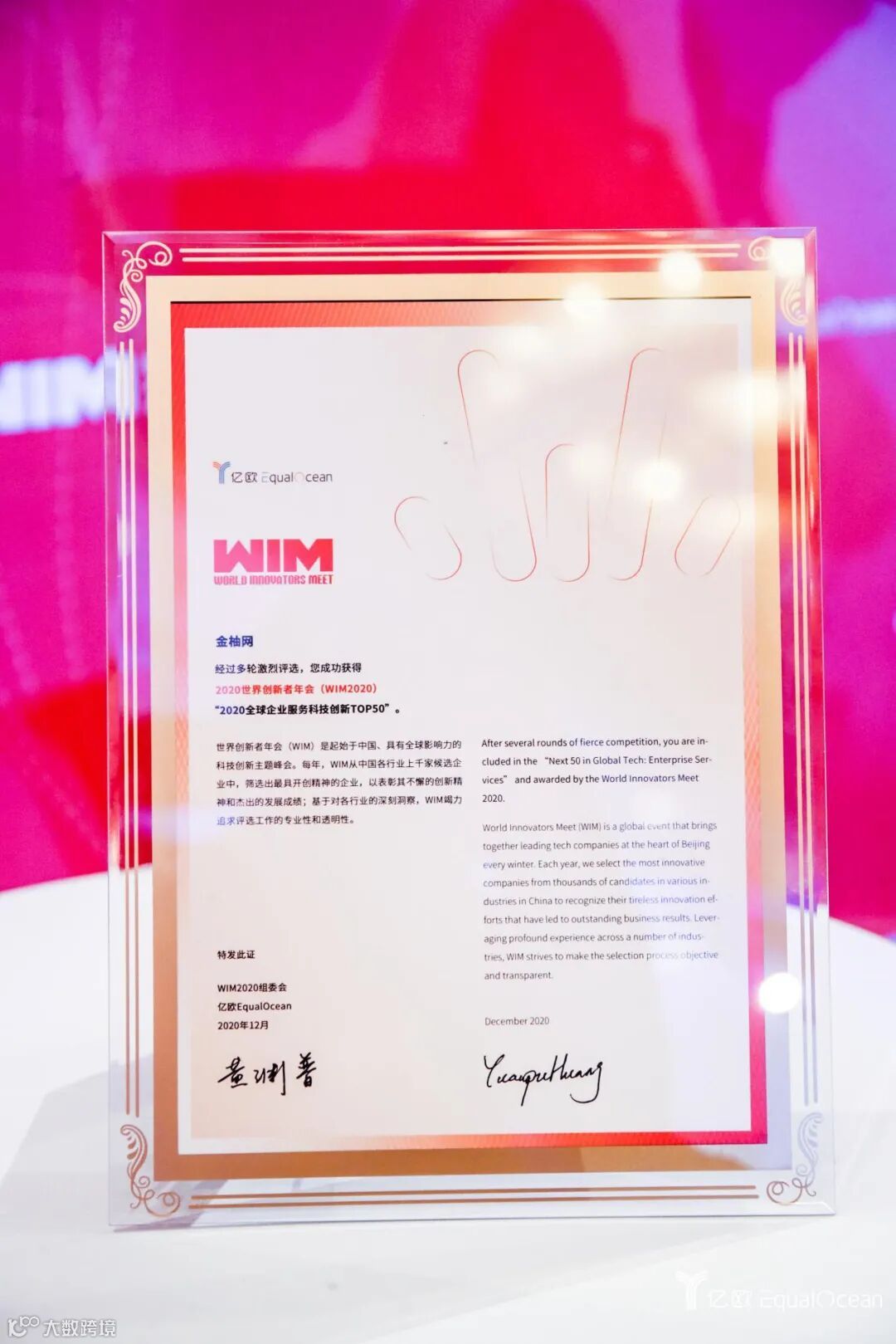 12月9日-12日,知名媒体亿欧主办的World Innovators Meet (WIM) 2020 世界创新者年会盛大举行,大会同期发布的WIA2020世界创新奖系列榜单和报告,囊括了来自全球范围内的优秀科技创新上市公司、创业公司、投资机构、创新人物,凭借着在人力资源服务领域的创新成果,金柚网入围榜单,彰显出公司推动人资数据化转型,以人资创新赋能企业发展的理念与成果得到广泛认同与高度评价。
