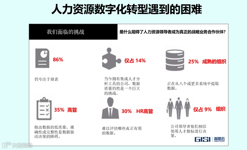 这些变革都有赖于数据提供精准决策的依据,规避主观判断带来的风险。但事实上,大多企业的HR数据质量非常差,完全不能满足决策的需要,核心原因还是HR老旧的分裂系统不能完成数据在场景中协同共享的创造和消费,数据还是仅依赖于HR部门在生产,严重滞后、差错率高、质量低。