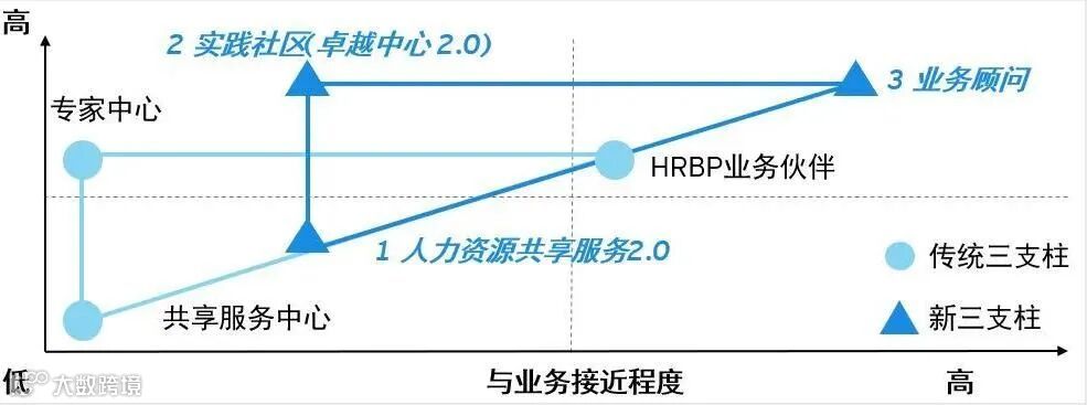 相比传统的人力资源管理以模块为主导,流程间统筹性差、职能缺乏灵活性、与战略结合不足等劣势相对明显。随着数字化变革深入,以价值为核心的新三支柱模式推动企业人力资源管理迭代升级。
