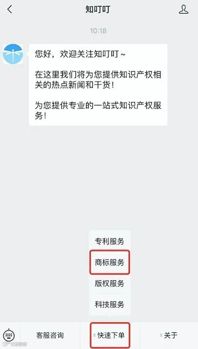 申请人登录知叮叮官网,或者关注“知叮叮”公众号,点击“快速下单-商标服务”,再点击“在线咨询”联系客服领取 “湖北商标福利”专属兑换码。