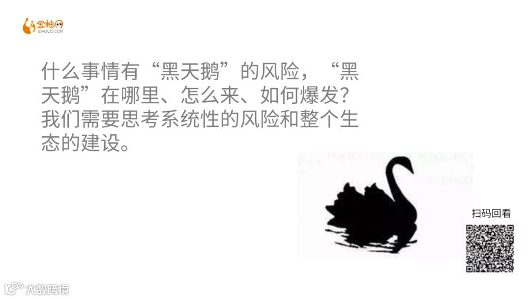 从某个角度来说,世界上充斥着各种各样的黑天鹅事件,但是当“黑天鹅”频飞,其实就成为了“灰犀牛”。我们将面临着无穷无尽的“黑天鹅”和“灰犀牛”的挑战,也许曾经我们认知中的风险,企业发展过程中可能会遇到的挑战,以及我们需要面对的一些不确定性因素,在未来都会被彻底颠覆。这就要求我们每个人时刻提高警惕,去思考什么事情会变成“黑天鹅”,什么事情有“黑天鹅”的风险,“黑天鹅”在哪里、怎么来、如何爆发?同理,如果“灰犀牛”变多,我们就需要思考系统性的风险和整个生态的建设。