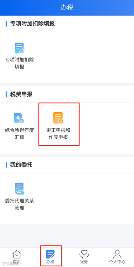 办理路径:登录个人所得税APP,点击最下方【办税】—【更正申报与作废申报】