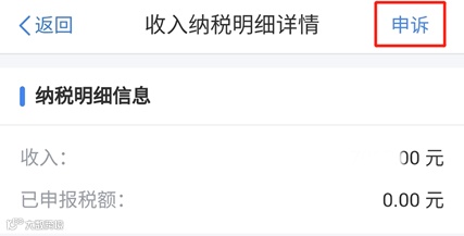 查询收入纳税情况时对某条记录有所异议,从未在该单位任职或取得任何报酬,可在“收入纳税明细详情”页面中,点击右上角的【申诉】进入申诉界面发起申诉。