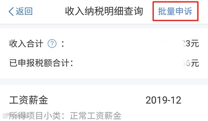 另外,还可以通过“收入纳税明细查询”页面右上角的【批量申诉】功能同时对多笔异议收入发起申诉。填选申诉原因后,点击【提交】完成申诉。