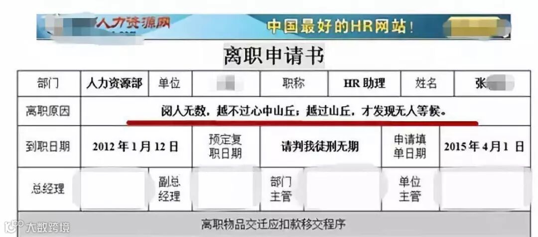 辞职理由:阅人无数,越不过心中山丘;越过山丘,才发现无人等候。