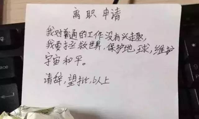 辞职理由:已错过青梅煮酒,无法再撩肩浪迹天涯。