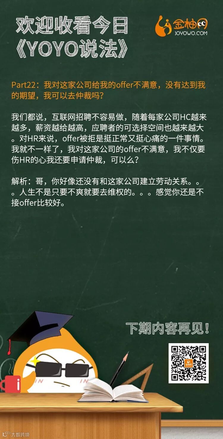 本期《YOYO说法》结束了,为给大家提供更多精准内容,如有职场中的法律疑惑,可在留言处写下你的问题,小编会摘选大家较为关注的内容呈现在之后的《YOYO说法》中,欢迎大家踊跃留言哦~