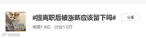 不久前,话题#提离职后被涨薪应该留下吗#登上微博热搜,几分钟之内阅读量高达1.8亿,引发网友热议。