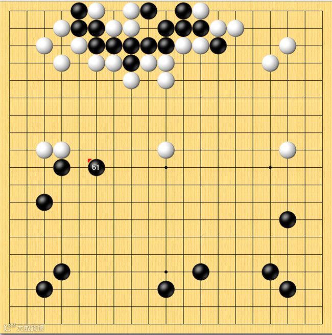 双方开局后格外重视角空,各自补牢后白棋抢先在中央扩张模样,刘素旻小姑娘意识到对围已经无法取得胜利,毅然选择了打入上方。至55手,黑棋抓住白棋失误成功活出并获得宝贵先手,随即机敏的在左边“跳”,补强自己弱棋、扩张阵势、瞄着破上方黑空,可谓一石三鸟的好棋。