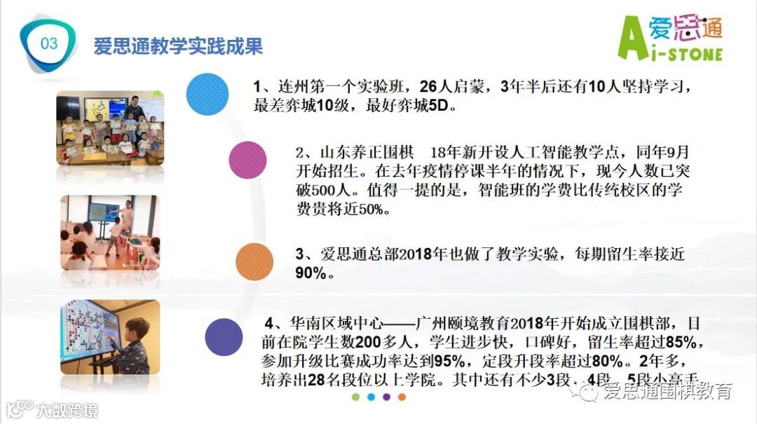 从爱思通人工智能围棋教育的教学创新、解决难点、实践成果、师资培训和教学装备等方面做了实践经验的专题分享。