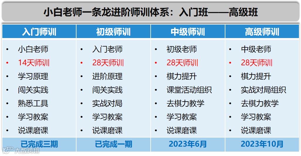 打造四阶段师资培训体系,培养“零基础”的老师,逐步进阶成长。