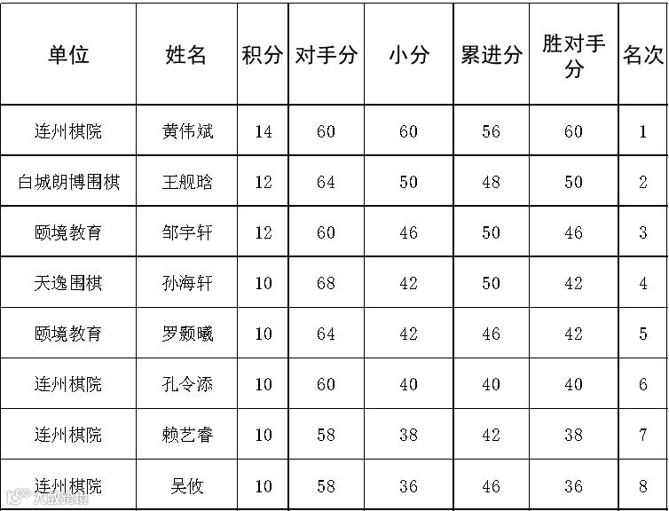 广州颐境教育、武汉徐老师围棋工作室、连州棋院、南昌弈趣围棋、新疆优学汇围棋、开阳拾叁文化、山东养正、白城朗博围棋位