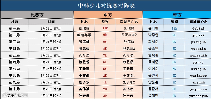 首届“爱思通”杯中韩少儿团体对抗赛将于3月19日晚19:00在弈城围棋网开战i,双方小棋手刘瑞旻、柳多彬届时将一争高下。iiiiii