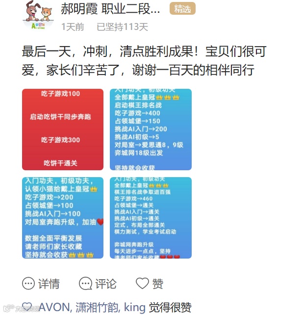 活动虽然已经结束,但孩子们在打卡活动中养成的每天坚持练习、勇于挑战难关的学习习惯,一定会伴随他们以后更好的进步。
