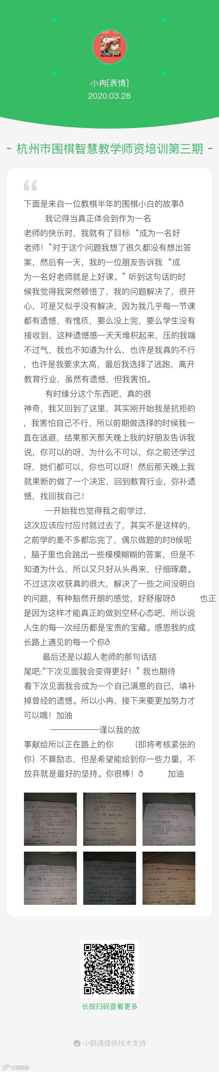 一个月紧张的师训好像转瞬之间就结束了,甚至还没来得及好好说一声“遇见你真好”,幸好每一位伙伴,都在打卡区留下了自己的体验心得。是的,把学生要走的路走一遍,失败的经历也让我们先感受一遍。有趣、有温度、追求实践的师训,带给我们的绝不仅仅是从业资格证书。这段经历,注定成为伙伴们难以忘怀的珍藏:感谢有你!