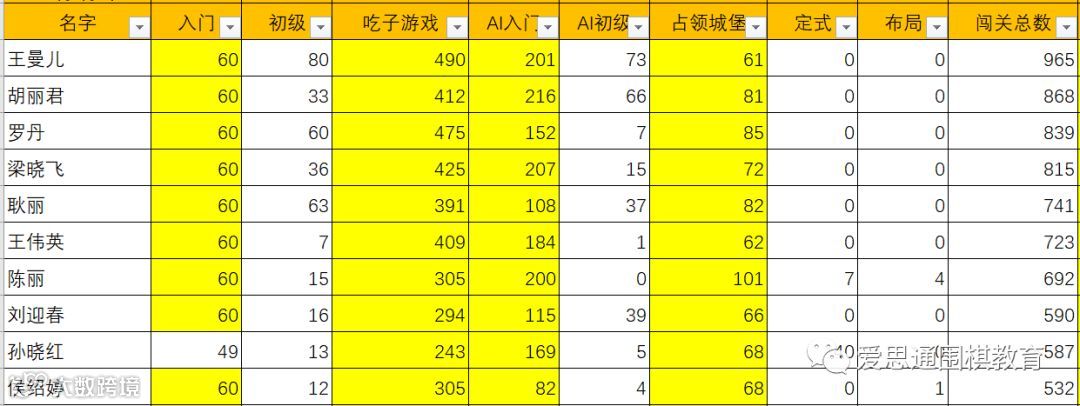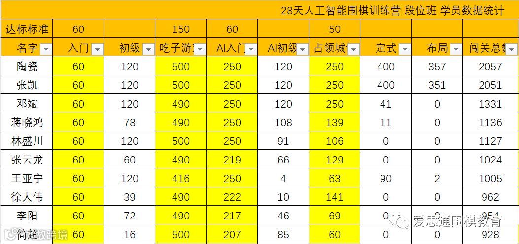 5月初,爱思通首期网络训练营酝酿,5月20日,首期爱思通训练营正式开讲,报名人数将近200名。以零基础学员为主,大家开启了一段你追我赶、携手见证彼此成长的28天人工智能围棋之旅。不少学员通过自己的努力与坚持,不断刷新数据和棋力,杨如辰、弋粉利、罗丹、陈玉玲等零基础和初级学员,凭借优秀的闯关数据(各班前十)和对局室成绩(达到10级),获得了弈城围棋会员年卡奖励。