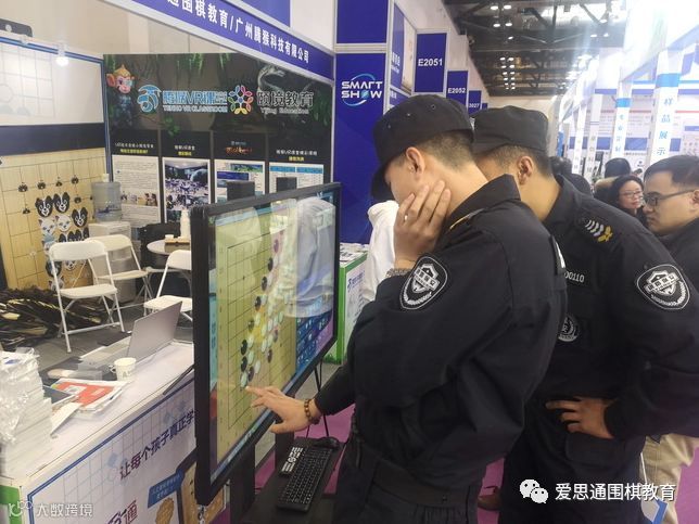 有意思的是,爱思通展位恰好在一条主通道的丁字路口,由于在爱思通大屏幕上试下围棋的观众太多,时常会在路口形成一定的阻塞,所以几位保安人员经常来提醒观众们让开通道。来的次数多了,结果保安小哥们也对爱思通发生了兴趣,几个人干脆在大屏幕上试下起来。