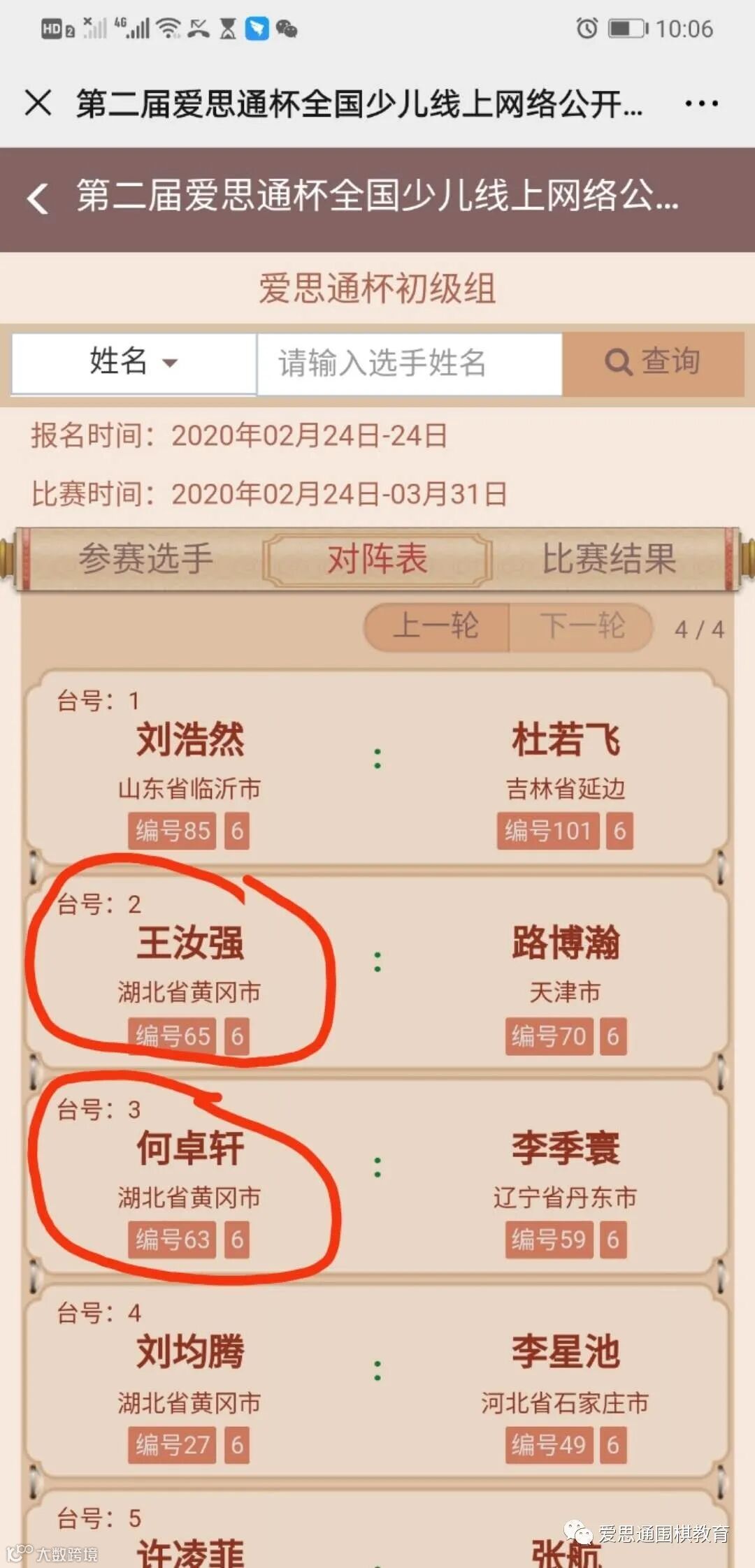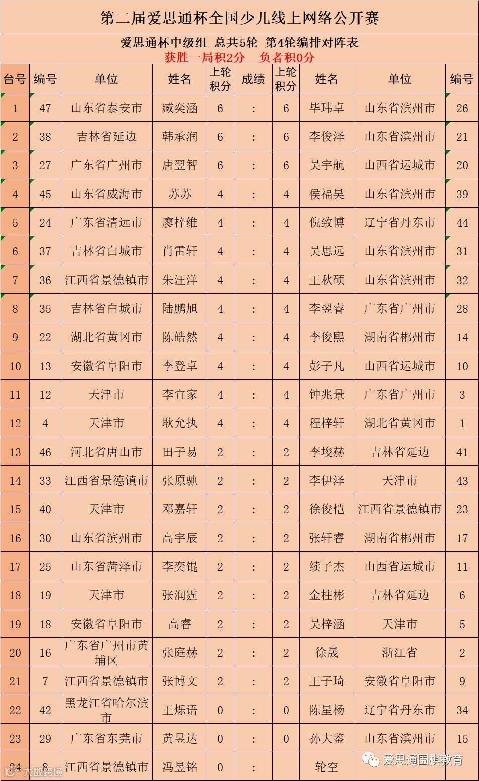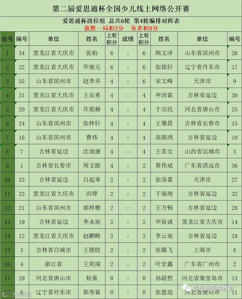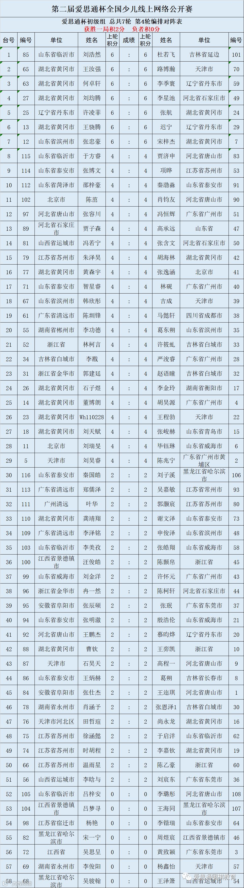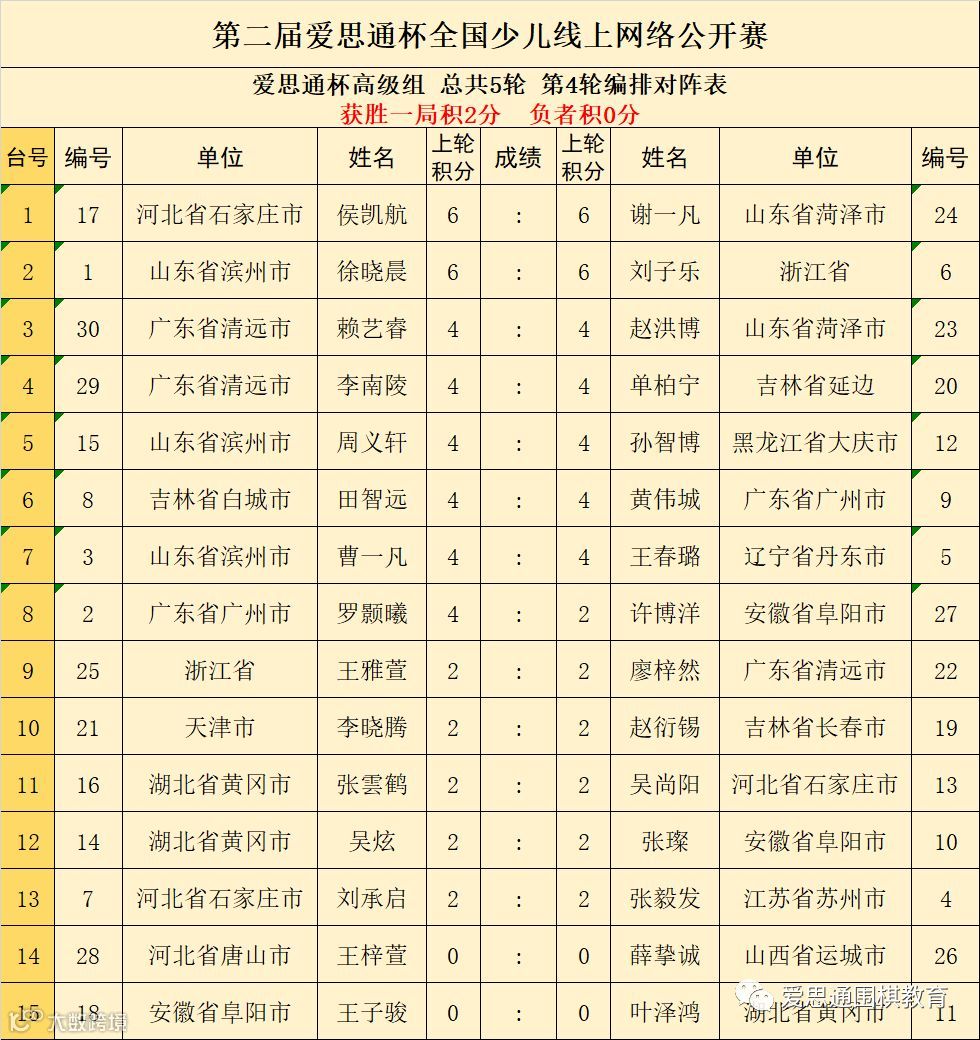 附:“爱思通”杯全国少儿赛第四轮对阵表