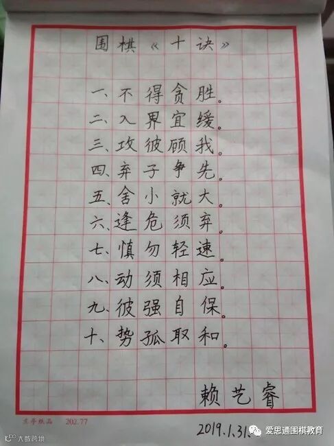 作为爱思通上线以来第一个无死角打通所有关卡的小灵童,弈城围棋网奖励了他一年的金卡会员,得知消息的赖艺睿也是很激动呢!通过这段时间的学习赖艺睿的棋艺飞速进步的同时书法也取得相当不错的进步,在学校里当选了班长,三好学生,期末语文数学双百,获得了书法“小书圣”,广州围棋定级赛冠军等多种荣誉!赖妈妈感觉这与学习围棋有着必然联系,客观的体现了爱思通的教学效果,最后让我们祝愿这位小灵童在围棋的道路上越走越远,希望他将来可以把围棋理念运用在生活中。