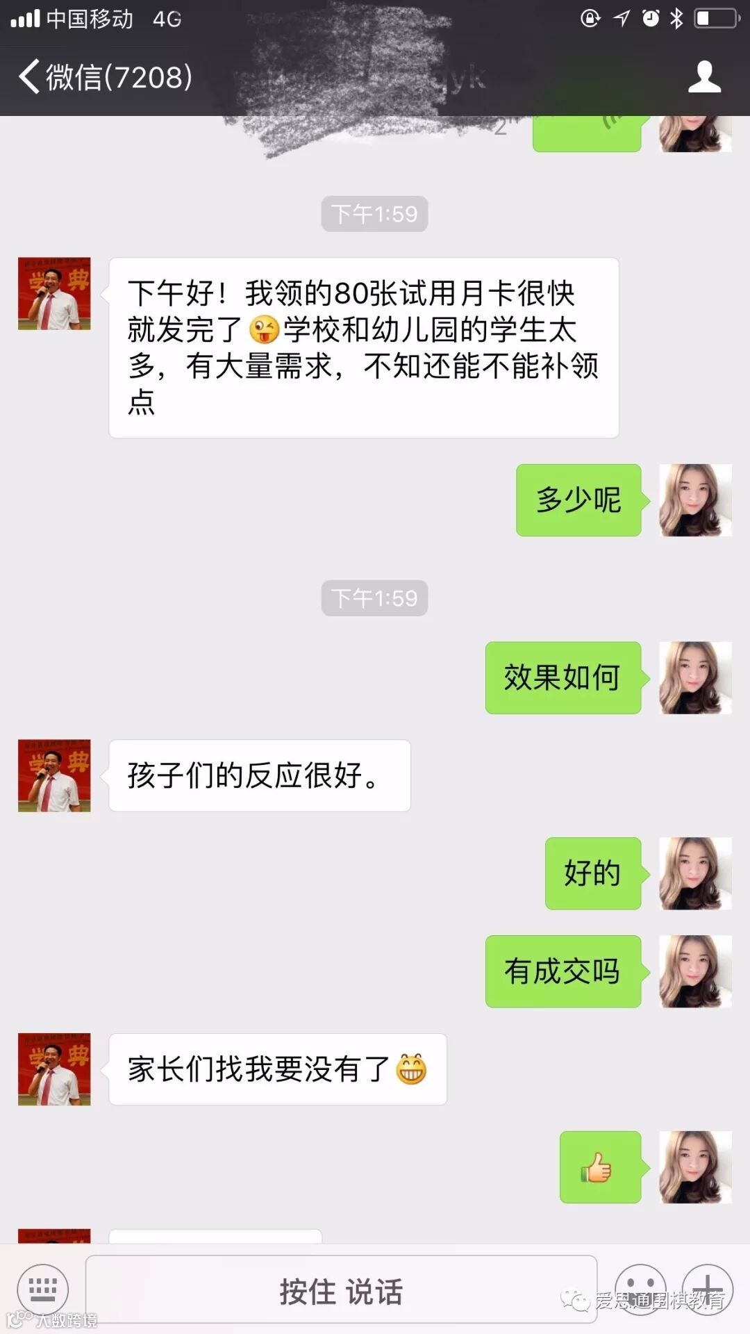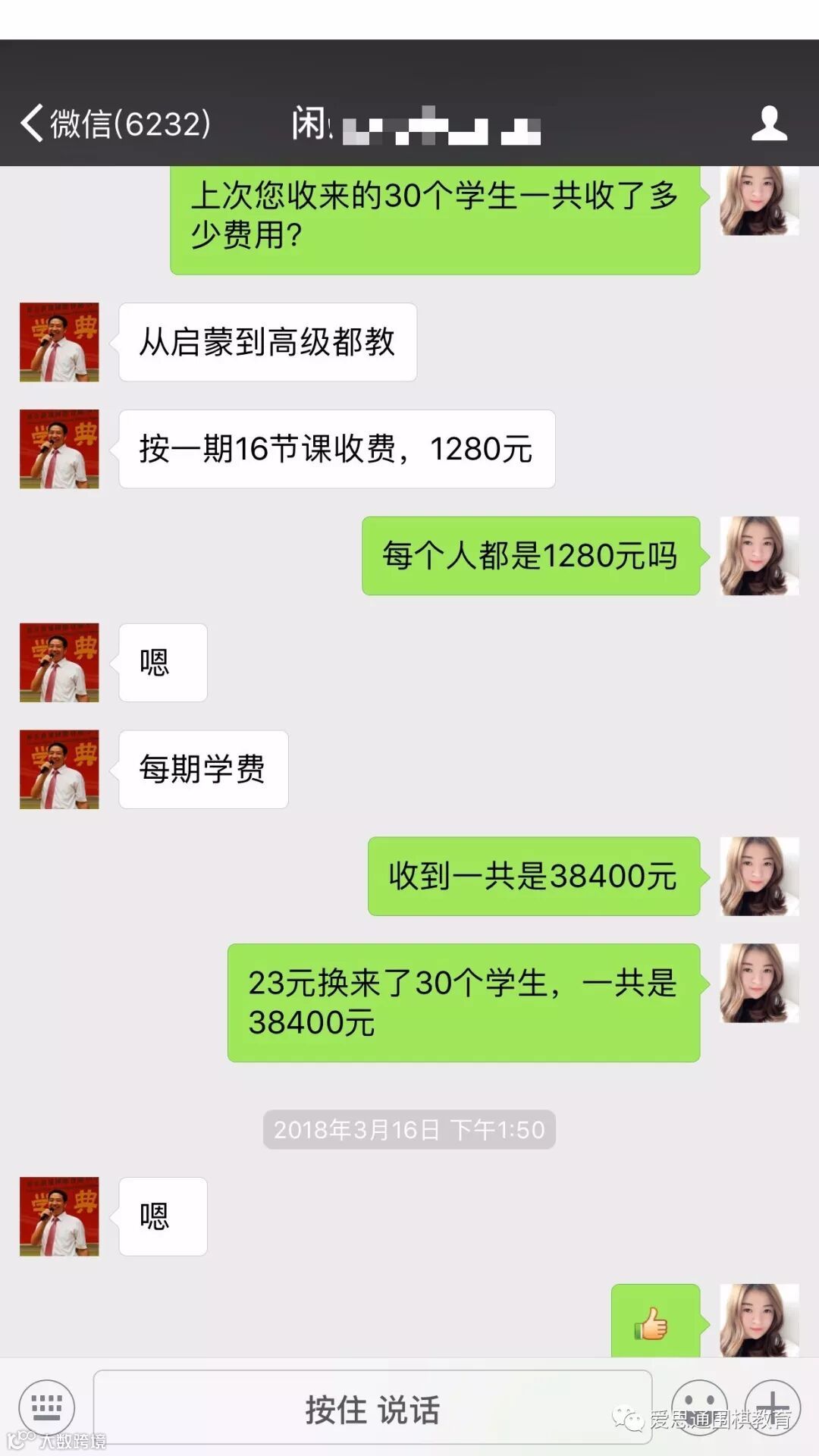 爱思通发起的扶持老师项目已初见成效,深圳新星教育的吴学东老师免费领取了80张月卡,只花了23元的运费,在小学幼儿园里将爱思通作为基础课堂应用,招到学员30名,一期16节课,每期1280元,一共收费38400元。
