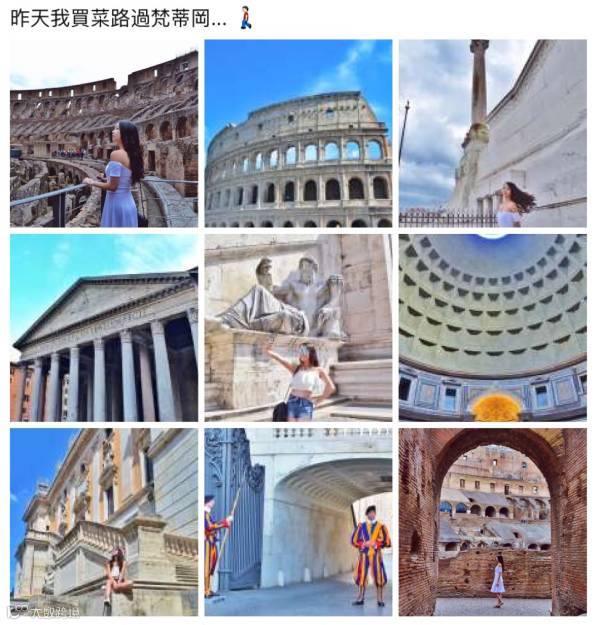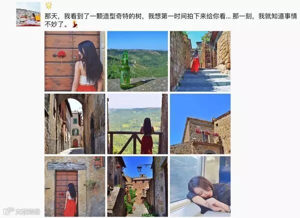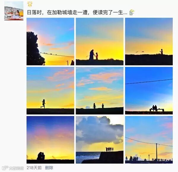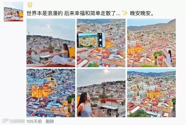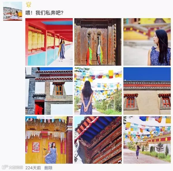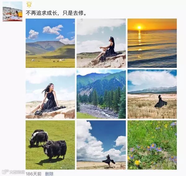九张图都发人像,容易显得太自恋,刻意,似乎整段旅行都在拍照... 九张图都发景色的话好很多,但是如果有一两张人像,会让整版图片看起来更加有趣,有活力,有代入感。