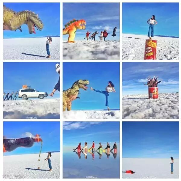 ▼玻利维亚盐湖可爱的白和蓝