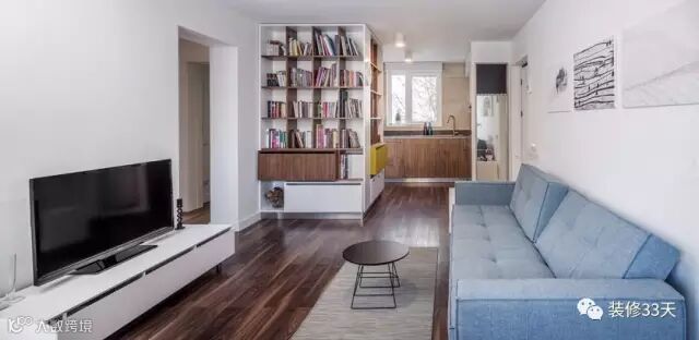 ▲ 位于罗马尼亚的一处公寓,进门之后左手边是客厅,右手边是厨房