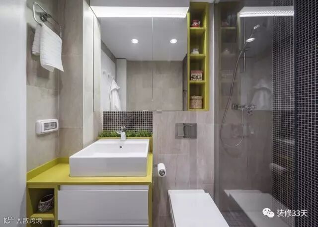▲ 洗手台和吊柜加入了黄绿色显得不单调