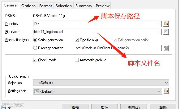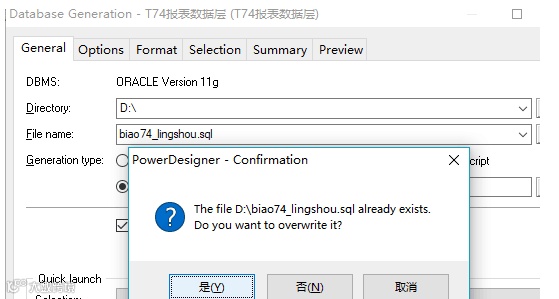 第二步、接下来开始导入数据表,即将PDM模型生成sql语句,并形成脚本文件: