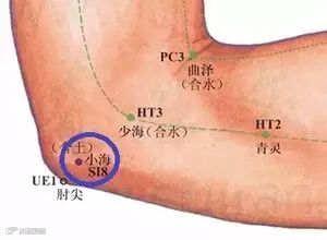 小海:屈肘,当尺骨鹰嘴与肱骨内上髁之间凹陷处。
