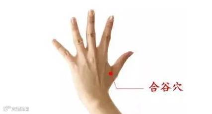 合谷:即“虎口”,在手背,第1、2掌骨间,当第二掌骨桡侧的中点处。