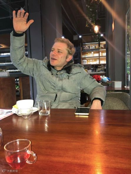 图为@禾染的德国同事模拟拦住陌生人进小区的样子