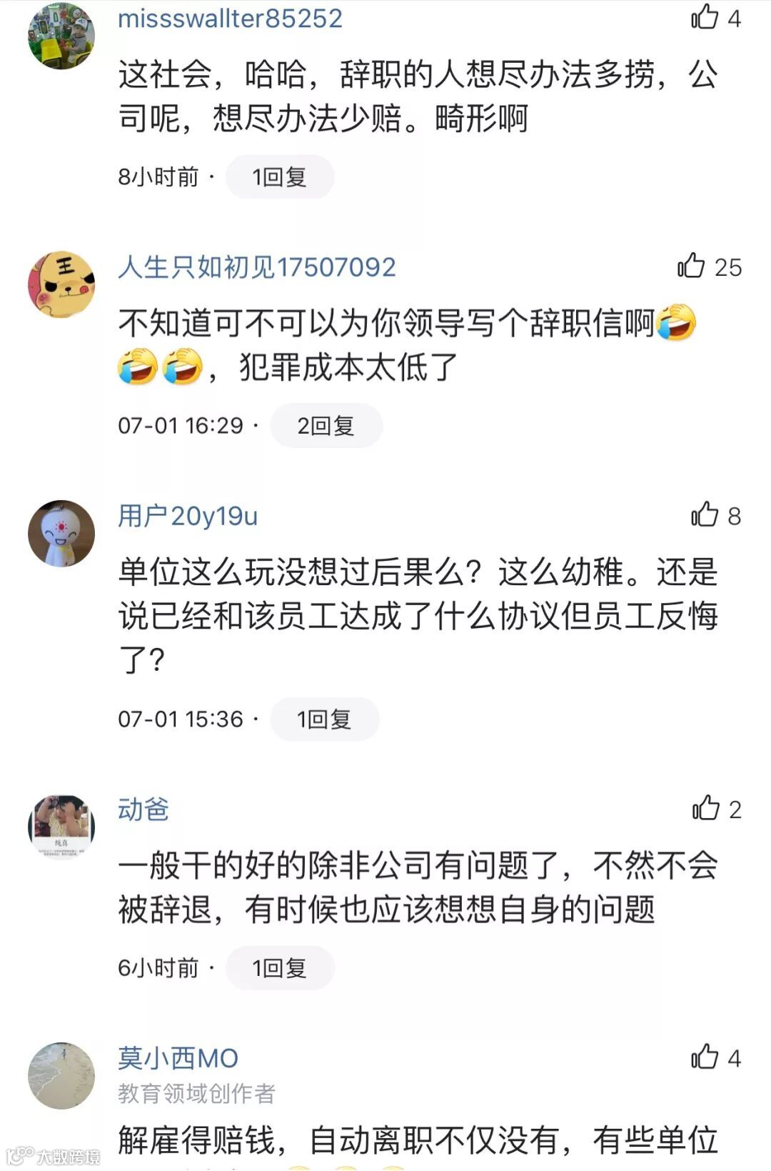 网友A:“不知道可不可以帮你领导写一份辞职报告,犯罪成本太低了”