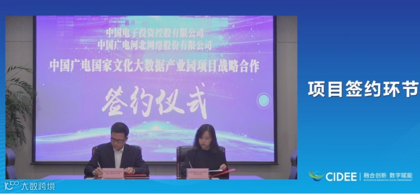 近日,在2022中国国际数字经济博览会上,中国广电河北网络股份有限公司与中国电子投资控股有限公司举行了中国广电国家文化大数据产业园项目战略合作签约仪式。