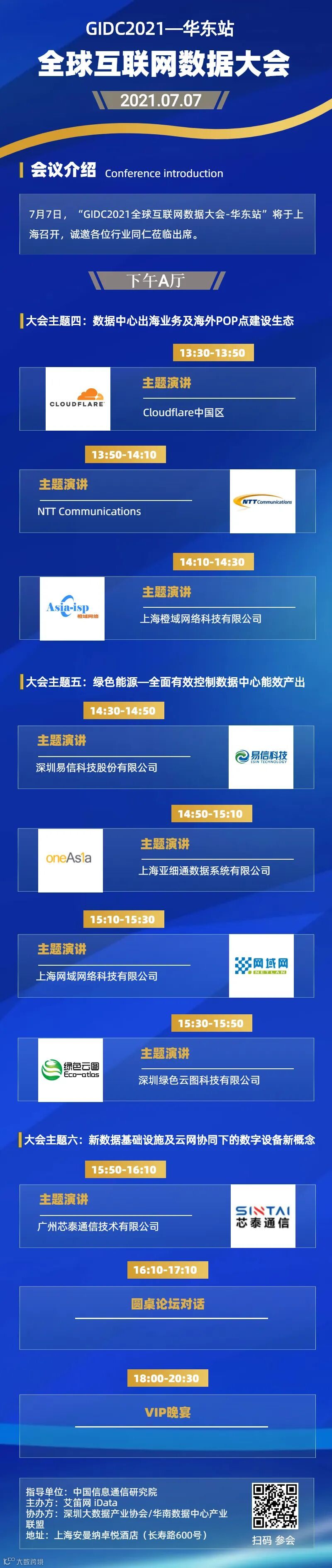 2021年GIDC全球互联网数据大会,将围绕“趋势、生态、硬件、服务、技术”五大关键词,围绕“新基建”、“绿色数据中心”、“IDC资产证券化”、“云网协同”、“云边融合”、“绿色能源”、“数据信息安全”、“混合云”、“SD-WAN”、“云原生”、“人工智能”、“DevOps自动化运维”等十个子主题,顺应5G时代下的新互联网发展趋势,提供具备创新能力的互联网软硬件产品及新一代技术赋能。