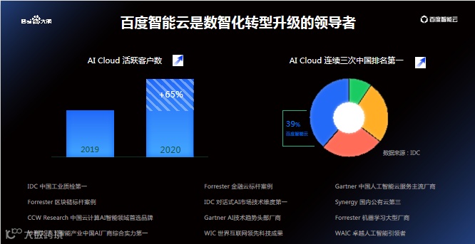 张建提到,从整个的产品的矩阵上,也可以看到百度智能云在AI领域和AI制造相关的AI云中现在的市场份额是NO.1。