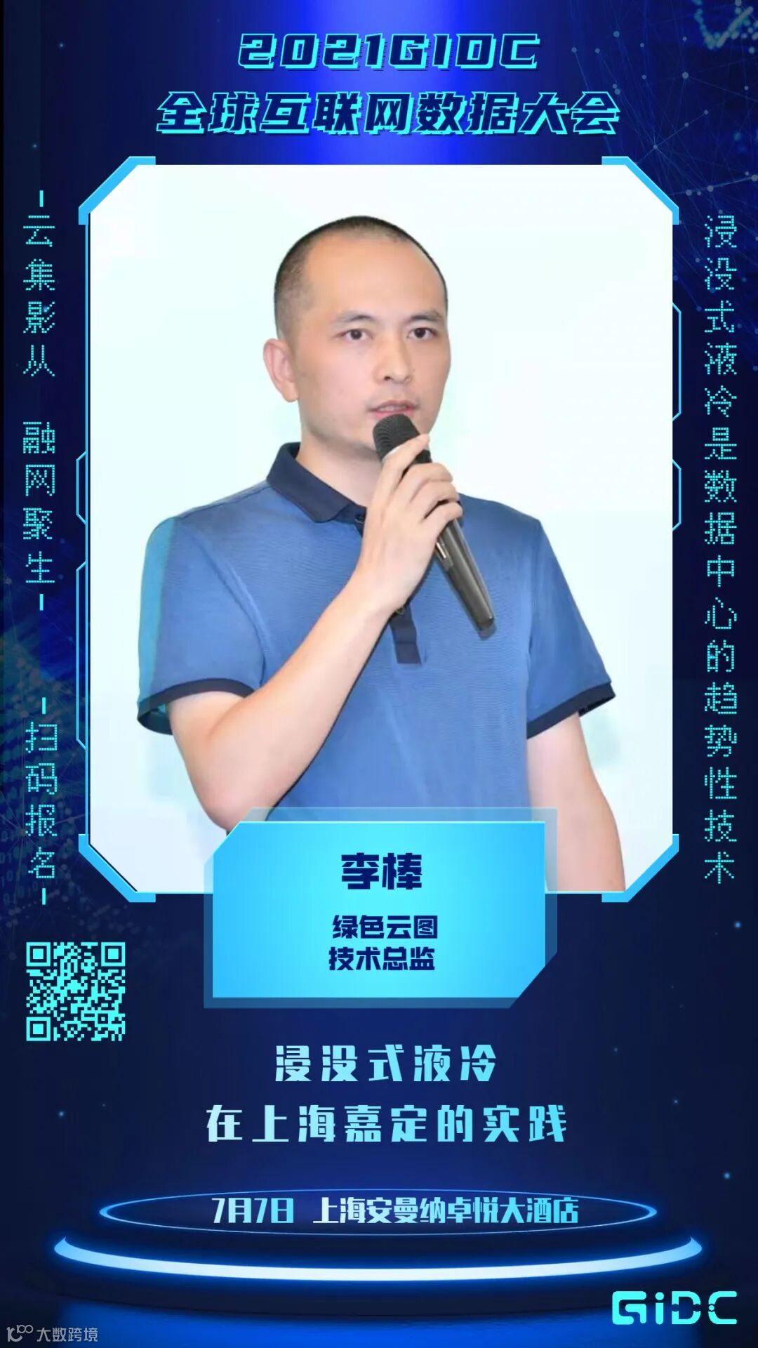 浸没式液冷是数据中心的趋势性技术,上海嘉定云宿浸没式液冷数据中心是第一个浸没式液冷在上海落地的项目,在本次GIDC2021-华东站大会上,深圳绿色云图科技有限公司技术总监李棒将会对此项目进行讲解,2021年7月7日,上海见!