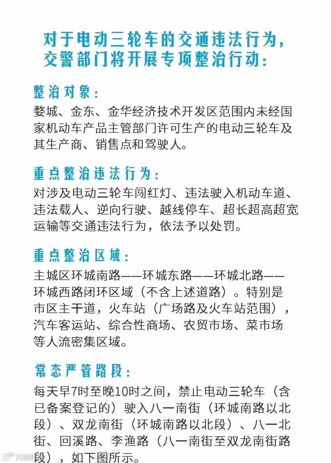 今年6月,市公安局、市经信局和市市场监管局共同印发《金华市区电动三轮车专项整治实施方案》,从8月15日开始,市本级将禁止销售电动三轮车,并同步开展电动三轮车备案工作。