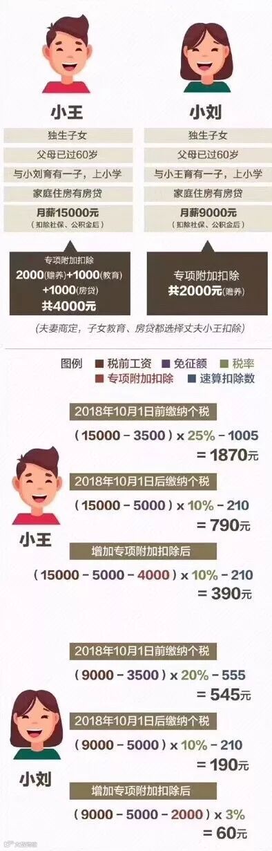 结论:2018年10月开始,夫妻俩每人可少缴纳个人所得税1435元,增加专项附加扣除后,每月可再少缴纳共530元,(相当于每年6360元)。