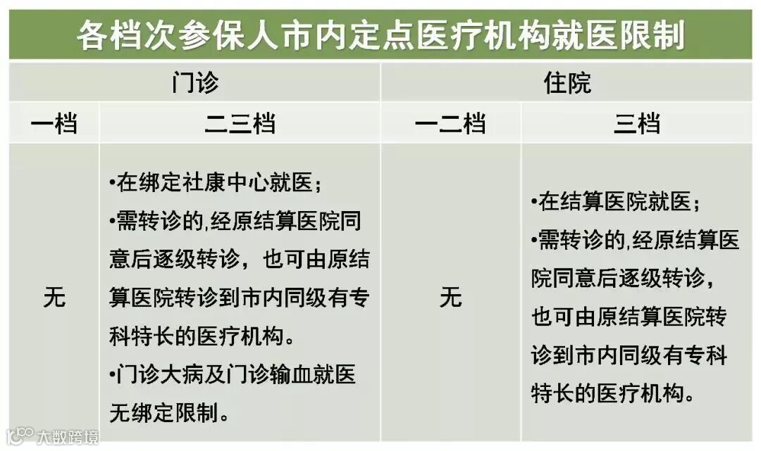 不管是哪一档,都是随时用的,三种形式的医保,只是缴费不同、报销比例不同。但是住院“起付线”和“封顶线”相同,实行统一的基本医疗保险目录,你只需清楚自己参加的医保是哪一档,再按照表格对照查询,就知道自己能享受的待遇了。
