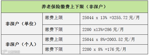 缴费基数:为职工上月工资总额,最高为深圳市上年度在岗职工月平均工资的3倍,即25044元,最低为深圳市最低月工资标准2200元