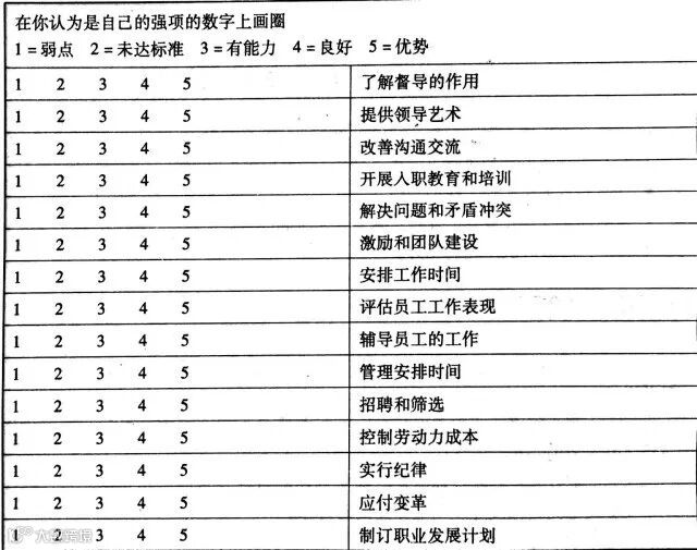 【自我能力测试表】