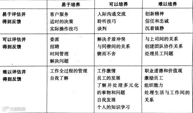 【管理技能培养的难易因素表】