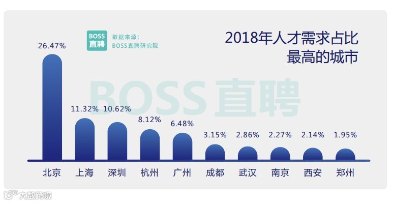 BOSS直聘研究院数据显示,2018年前两个月,全国人才需求量最大的城市,白领平均月薪为8730元,同比增长2.9%。北京、上海平均月薪突破1万元大关,领跑全国,深圳、杭州紧随其后。
