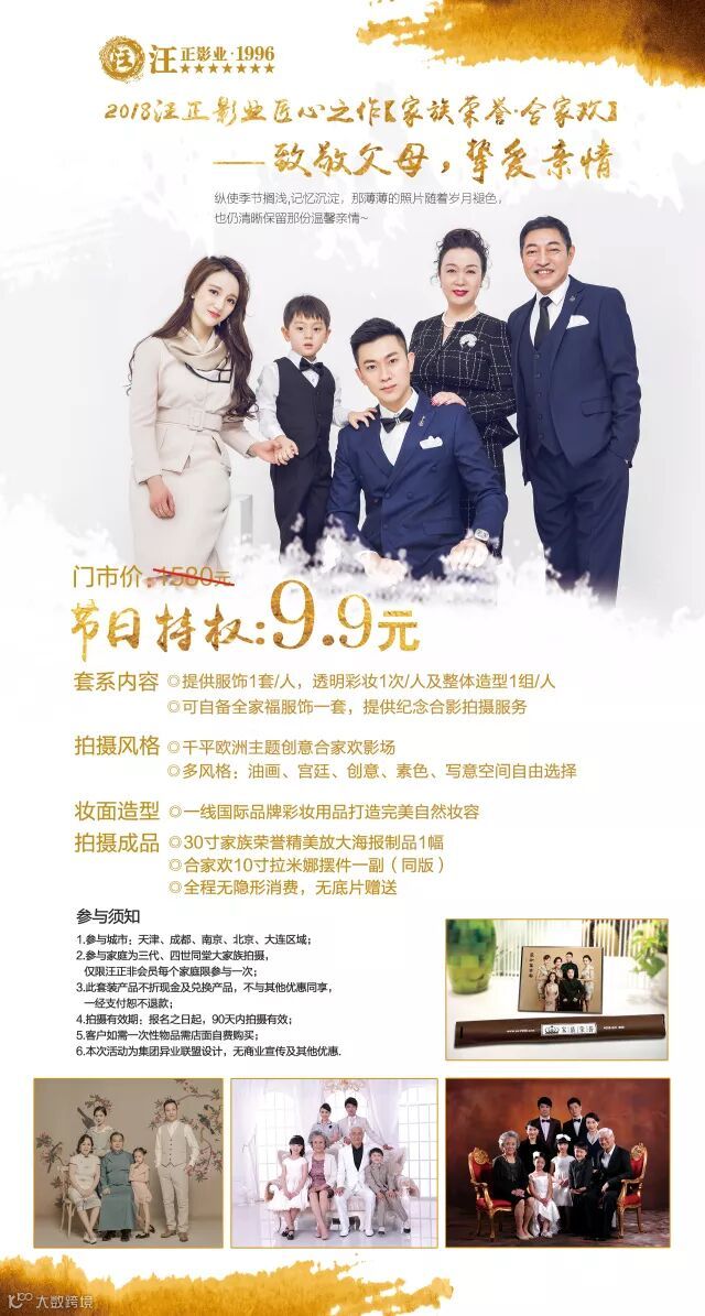2.参与家庭为三代、四世同堂大家族拍摄,仅限汪正非会员每个家庭限参与一次;