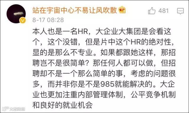 有网友支持小米,认为企业偏爱985学生是有一定道理的: