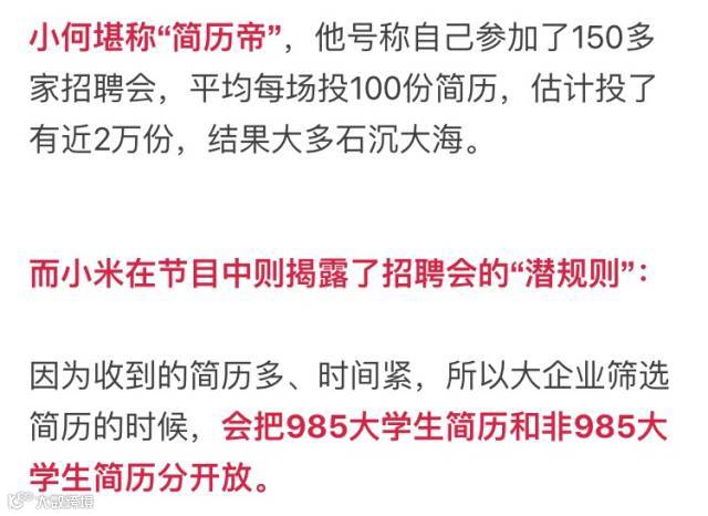 做客节目现场的是刚毕业的“简历帝”小何和前人事部经理小米。