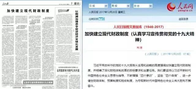 2017年12月20日,财政部长肖捷在人民日报发表题为《加快建立现代财政制度(认真学习宣传贯彻党的十九大精神)》文章。