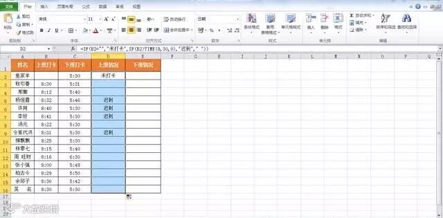 tip:如果B2单元格为空,就会返回“未打卡”;如果大于8:30则会返回“迟到”;如果都不满足的话则不显示。
